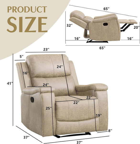 CANMOV Leather Recliner Chair, Classic and Traditional Manual Recliner Chair with Overstuffed Arms and Back, Manual Single Sofa with Concealed Cup Holders,Beige