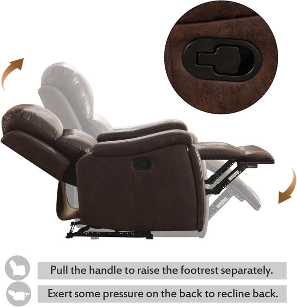 Easy to Operate: Pulls out the lever on the arm of the recliner to raise the footrest up, the chair will be adjusted to a standard TV position. Then you can lean back to push the backrest to a maximum of 145 degrees. When retracting the footrest, you can lean forward and sit up upright, then use your heels to press against the middle of the footrest.