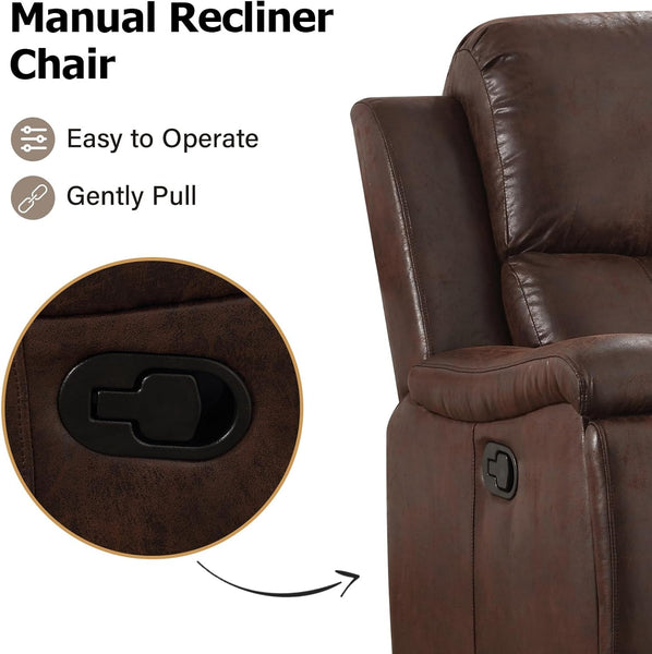CANMOV Leather Recliner Chair, Classic and Traditional Manual Recliner Chair with Overstuffed Arms and Back, Manual Single Sofa with Concealed Cup Holders,Red Brown